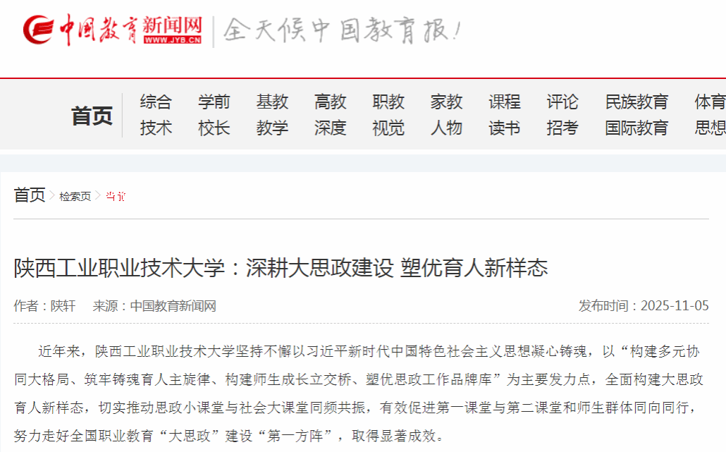 【七五·华章】中国教育新闻网:陕西工业职业技术大学深耕大思政建设 塑优育人新样态