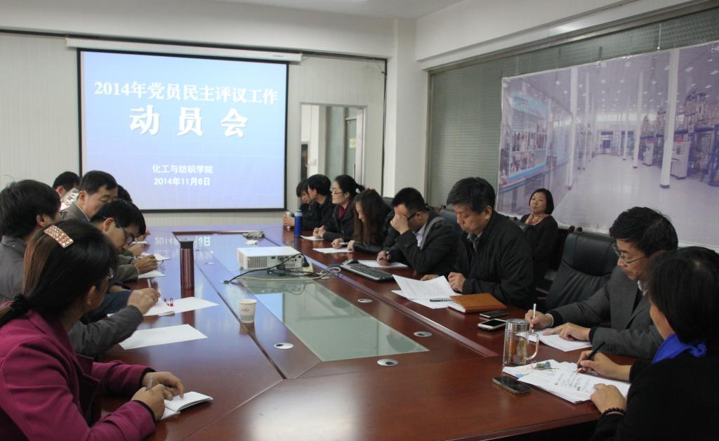 11月6日下午,化工与纺织学院党总支2014年度党员民主评议工作动员会举行,化纺学院全体党员干部参加了会议,会议由党总支书记孙文杰同志主持。