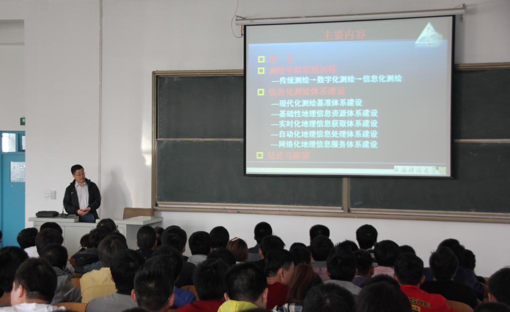 10月21日下午,西安科技大学测绘学院院长姚顽强教授为土木工程学院测绘专业学生作题为《信息化时代的测绘学科发展》的学术报告。科研处处长黎炜、土木工程学院党总支书记何克祥、土木学院相关专业教师及测绘专业学生300余人聆听了报告。