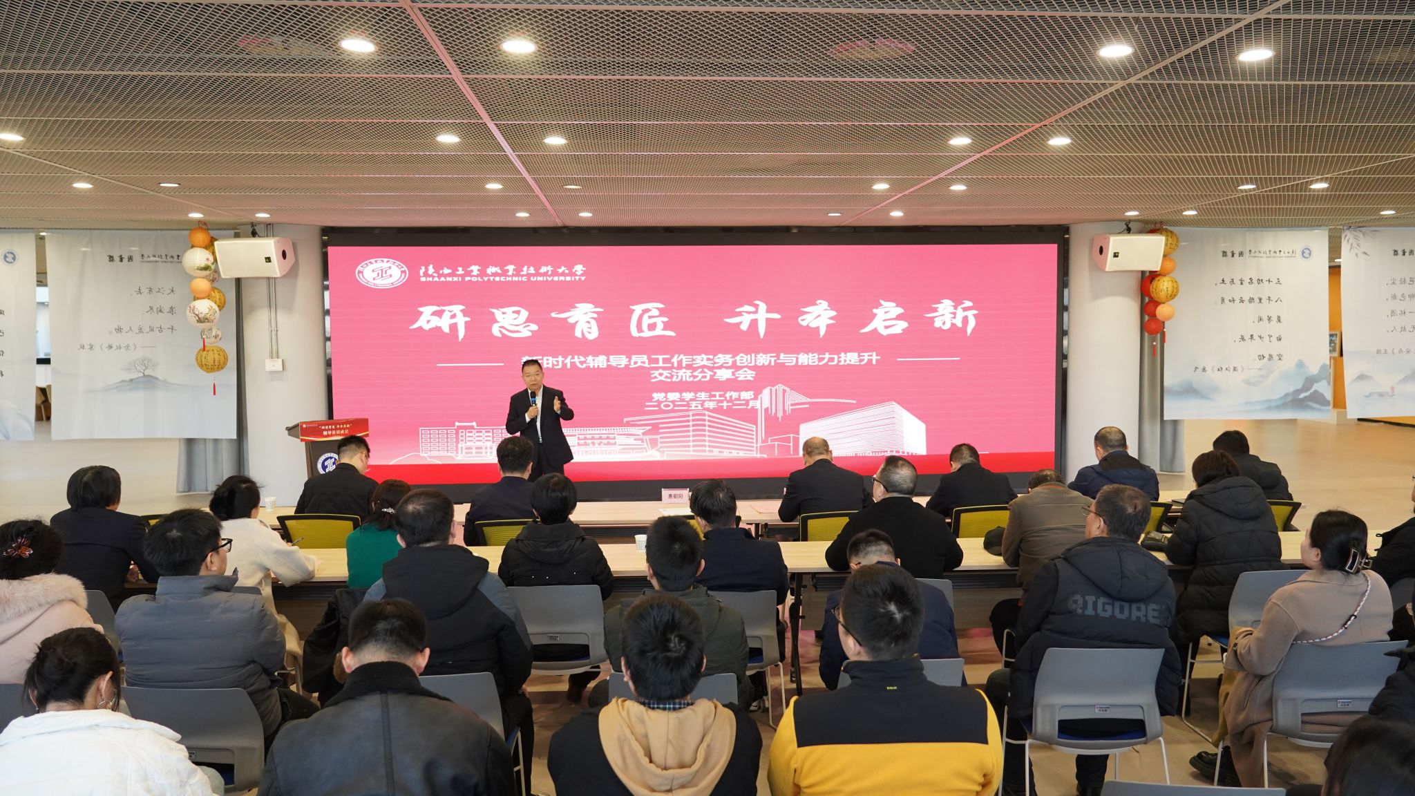 为贯彻落实《新时代陕西高校思想政治辅导员队伍建设提质增效十条措施》和《陕西立德树人机制综合改革试点工作实施方案》精神,进一步加强我校省级辅导员队伍建设综合改革试点工作,12月25日,我校在经开校区图文信息中心举办“研思育匠 升本启新——新时代辅导员工作实务创新与能力提升”交流分享会。党委书记惠朝阳,副校长刘清出席活动,活动由学工部部长郝军主持。