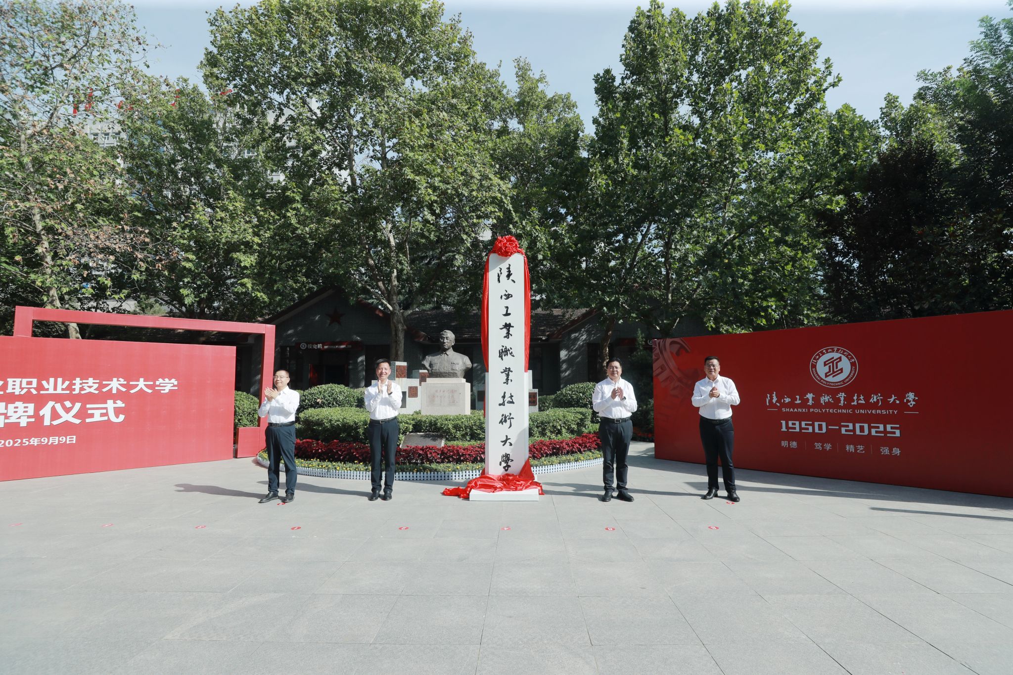 9月,举行揭牌仪式,学校正式迈入本科层次职业教育新纪元,开启了创建全国一流职业技术大学的崭新篇章。省委、省政府任命惠朝阳、刘永亮、贺天柱、马晓云、贺建权、梅创社、刘清七位同志组成陕西工业职业技术大学首届领导班子。