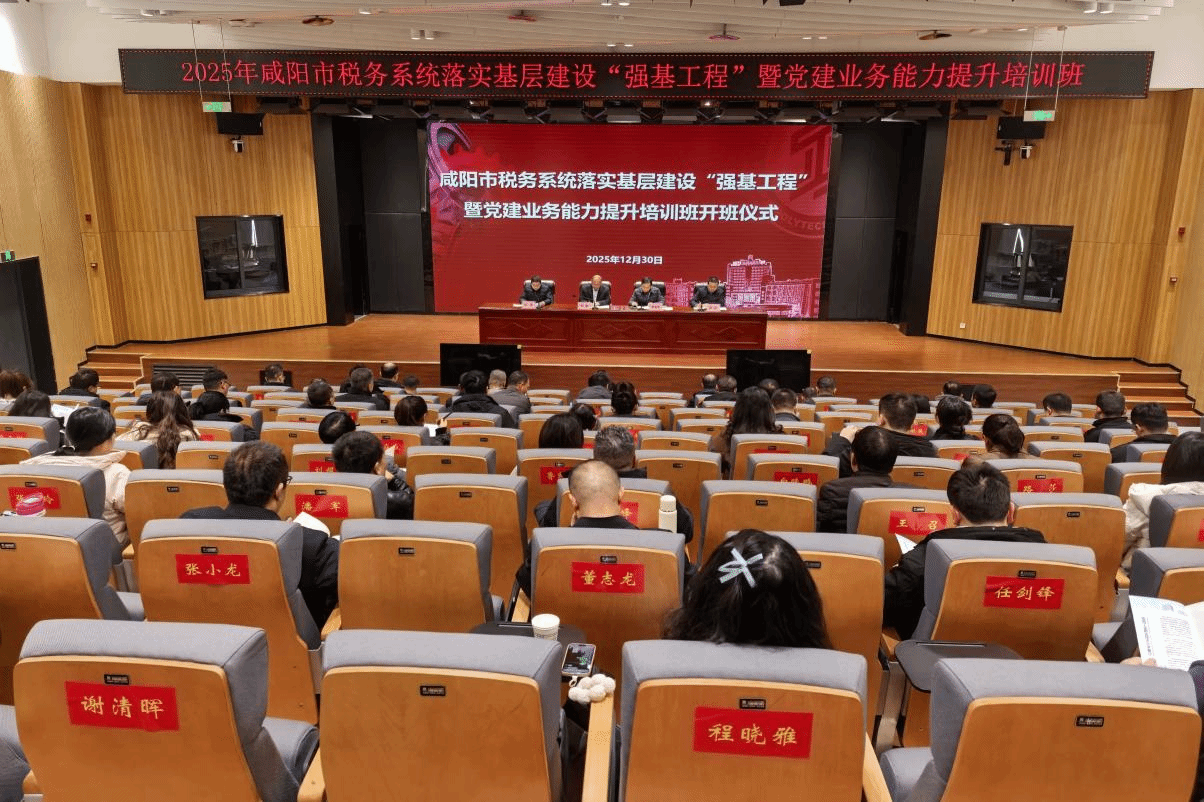 12月30日上午,2025年咸阳市税务系统落实基层建设“强基工程”暨党建业务能力提升培训班开班仪式在我校经开校区举行。咸阳市税务局党委委员、副局长申宏军,我校党委委员、副校长刘清出席开班仪式。仪式由继续教育与培训学院院长闫军主持。
