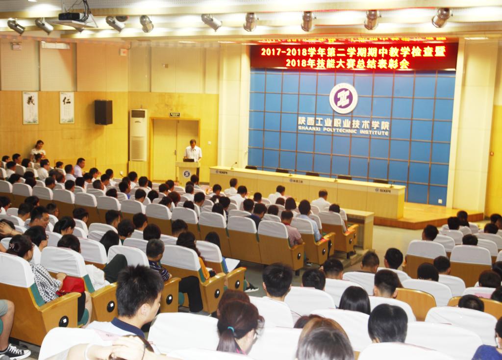 为全面总结学院期中教学检查整体情况及乐游棋牌2018年技能大赛情况,表彰技能大赛中表现突出的集体和个人,6月20日下午,乐游棋牌在学术会堂举行了2017-2018学年第二学期期中教学检查暨2018年技能大赛总结表彰会。学院党委书记惠朝阳,院长张晓云,党委副书记、副院长刘永亮,副院长梅创社、杨卫军,教务处、教育教学质管中心、学生处、二级学院及各部副科以上干部、教研室主任、教师代表、学生代表共400人参加会议。会议由副院长杨卫军主持。