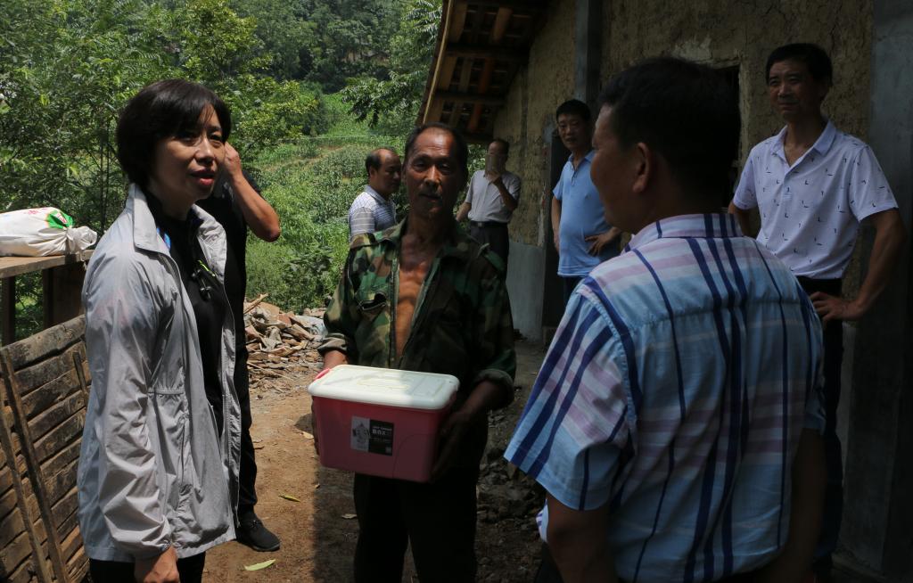 当日一早,张晓云院长一行在流水镇镇长陈刚、副镇长刘玉刚及香山村两委班子成员,乐游棋牌驻村第一书记刘智鑫及驻村工作队同志陪同下,冒着高温酷暑,进村入户,实际考察调研了乐游棋牌帮扶的牛、猪养殖专业户,并与他们进行座谈,详细了解养殖情况。在乐游棋牌2016年启动帮扶的药材种植示范基地,张晓云院长一行与示范户交谈、查看药材生长情况。张晓云院长、梅创社副院长还代表学院对驻村干部、养殖专业户及贫困户表示亲切慰问,给他们送去了菊花茶、白糖、冰糖、灭害灵等防暑降温慰问品并实地查看了驻村干部办公、住宿、生活等情况。
