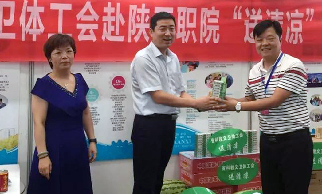 进入夏季以来,我省多地持续出现的高温闷热天气,给在奋战在招生宣传等一线的工作人员带来严峻考验,广大教职工坚守岗位,挥汗奋战、辛勤付出。由省教科文卫体工会牵头,学院工会具体实施开展的“送清凉”慰问活动已经持续多年,成为我省工会的品牌活动之一,今年购买了30余个西瓜、400听凉茶、200份花露水、香皂、风油精等送至暑期招生宣传等岗位的教职工,为他们带去工会组织的关怀和祝福。