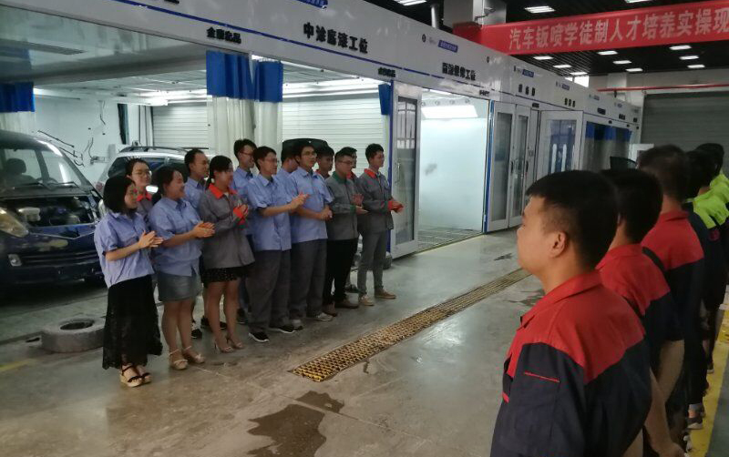 根据与咸阳天益汽车服务有限公司签署的校企现代学徒制人才培养战略合作框架协议,汽车学院将现代学徒制人才培养和青年教师下企业锻炼有机结合,在学生自愿报名的基础上,遴选汽车检测与维修技术、汽车车身维修技术和汽车电子技术等专业的22名同学组成现代学徒制班级,接受企业专业维修技师的汽车钣金喷漆与机电维修、新能源汽车实训台架制作等项目的系统培训。在这一过程中,汽车学院近5年进校的青年教师全程参与,既作为学生进行实践教学能力锻炼,同时结合自身所长为学生进行指导。