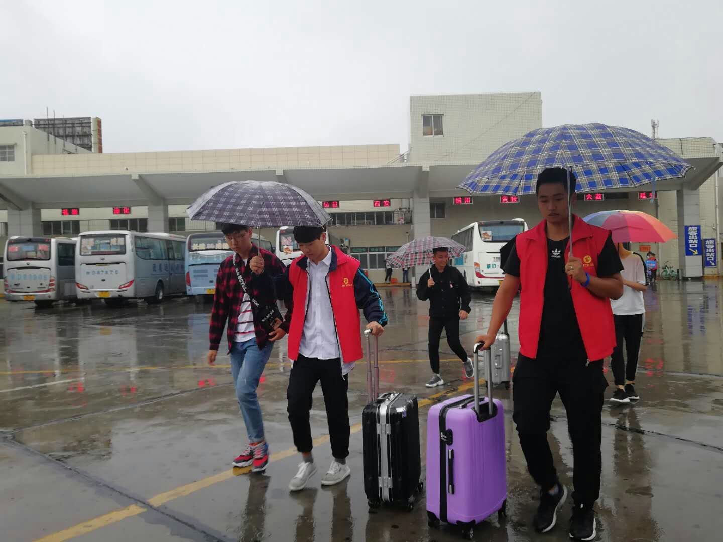 细雨飘飘 热情难消 报到当天,团委各级学生组织、各团总支工作人员从早晨六点钟开始,在火车站、汽车南站、汽车北站安排人员接站。由于车站出站口人流量大,为保证服务到更多的新生,各学生组织以小组为单位,负责各个出站口的迎接工作,信息登记工作,以及校车接送工作,并采用轮换班的工作方式,为新生提供优质贴心的服务。虽然迎新期间存在下雨、新生数量多、新生到达时间不定等各种问题,给迎新工作带来了一定的难度。但在志愿者的组织下,各小组有序迎接新生,配合无间。