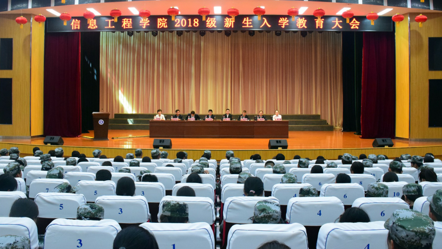 9月21日上午,信息工程学院2018级新生入学教育大会在明德堂举行。教务处副处长刘军旭、学生处副处长张科海,信息学院党总支书记闫军、院长何玉辉、副院长殷锋社和2018级全体新生、辅导员、班主任参加会议。