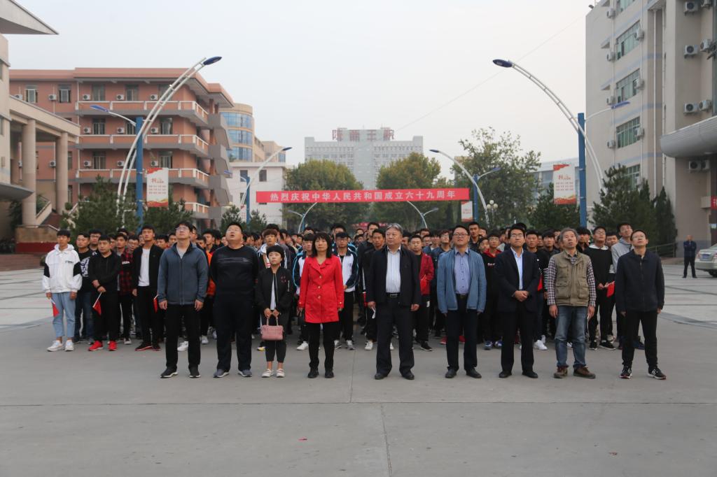 6时50分,升旗仪式正式开始,迎着晨曦,国旗护卫队队员护送国旗走向升旗台,伴随着《义勇军进行曲》的奏响,鲜艳的五星红旗在学院南门冉冉升起,全体师生昂首肃立,行注目礼。