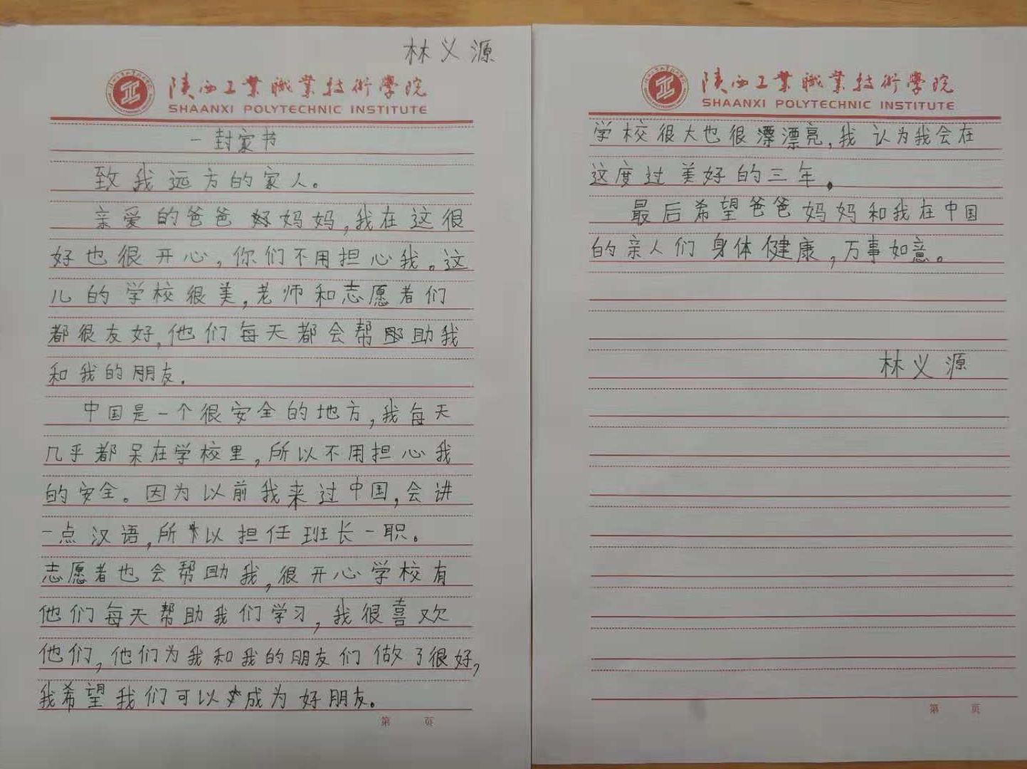 11月4日,工商管理学院留学生举行了“一封家书”主题班会活动。一封封家书,一份份真情,留学生们把平时没有机会对父母表达的爱写在信里;把对父母的感恩沁在动容的泪水中;更把对新生活的展望寄于声声承诺中。留学生们的家书辞藻并不华丽,行文也很短小,甚至掺杂着英语、汉字、拼音等多种表达方式,但每一封家书都表达出真挚的思亲之情,也传递出他们在中国努力学习的决心和展望。