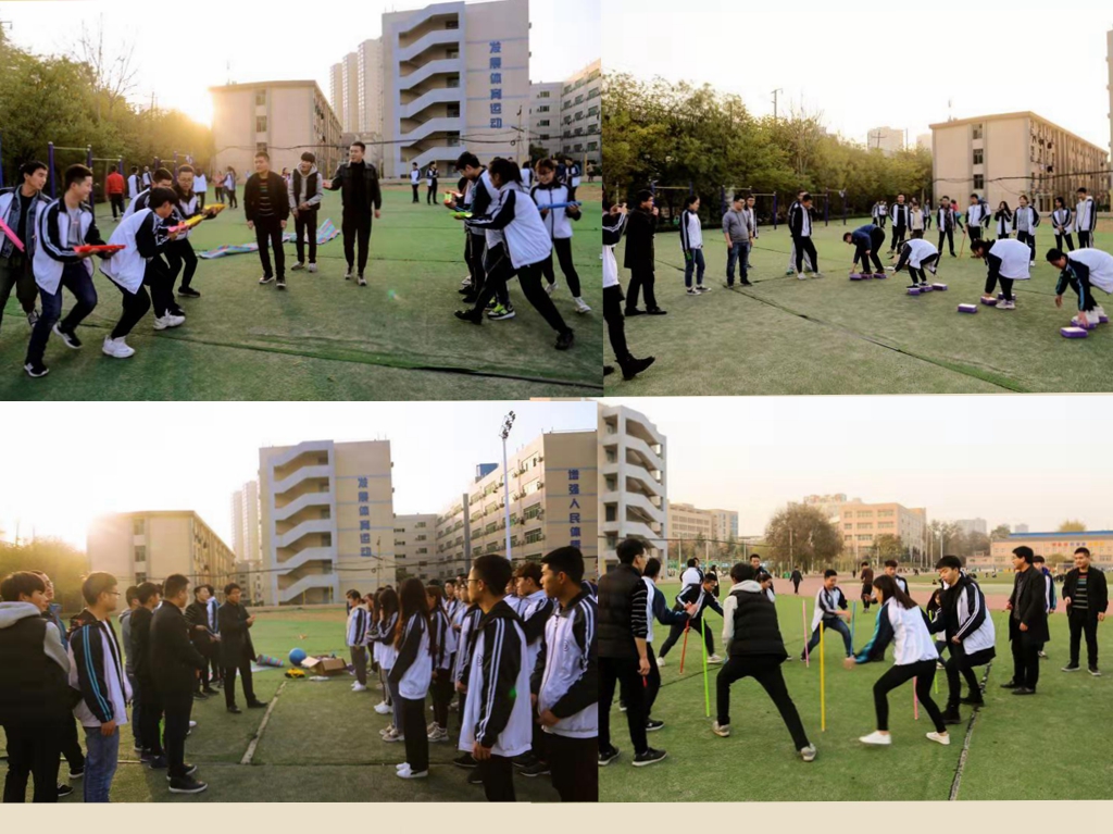 训练中,同学们依次进行了“摸石过河”、“有轨电车”、“无敌风火轮车”、“背夹球”、“9人10足”、“不倒森林”、“珠行万里”等活动,整个活动现场气氛活跃,精彩激烈,笑声不断。
