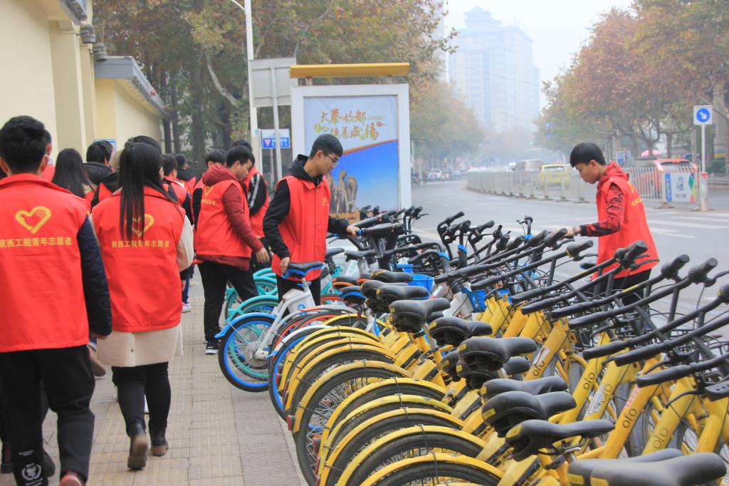 12月1日,土木工程学院开展了“共享单车,共享文明”志愿服务活动,对学院周边占用盲道、机动车道、绿化带等随意停放的共享单车进行规整,并向市民宣传文明共享的理念。