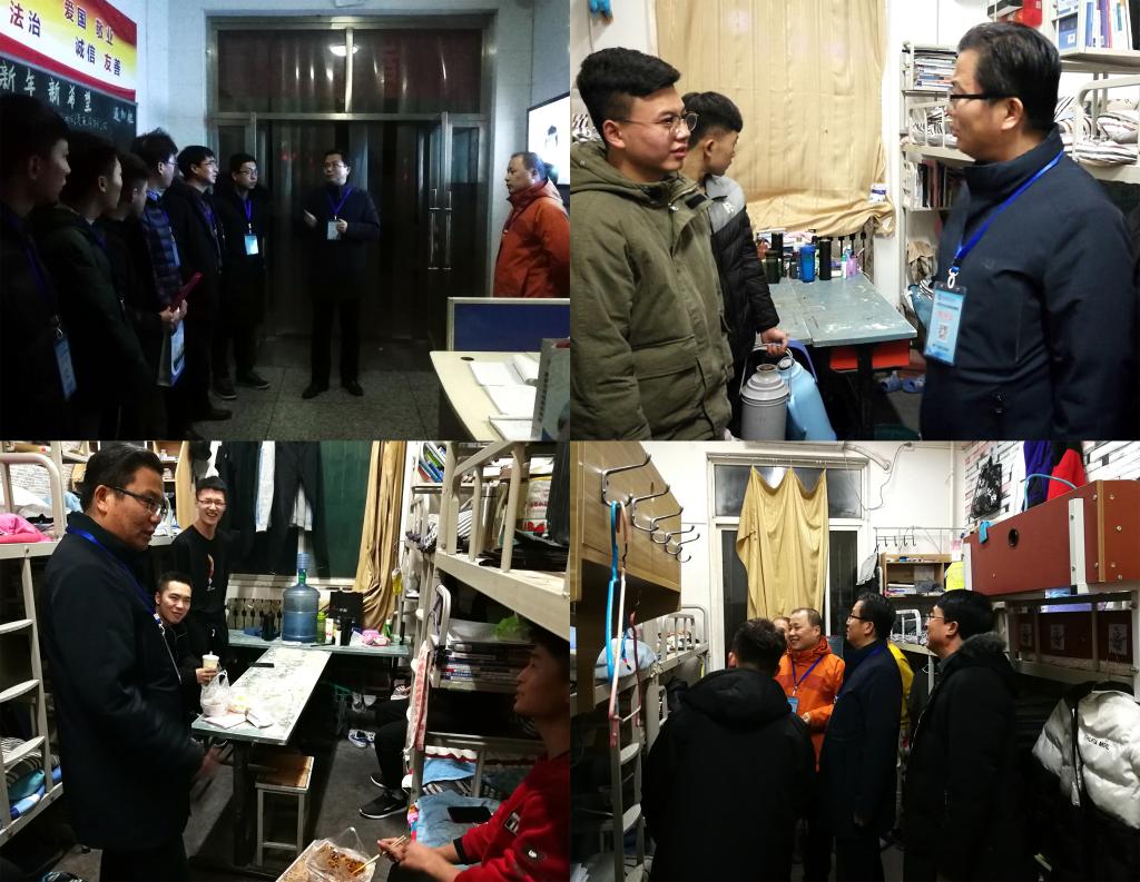 1月5日晚,机械工程学院党总支书记乌军锋带领学工办主任徐军纪、辅导员和学生干部深入学生公寓开展传染病防控和校园安全隐患排查工作。