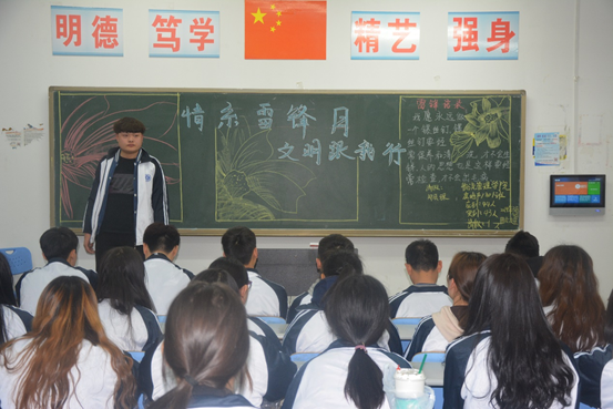 各班级以主题演讲、主题宣誓、学习雷锋金句、齐唱《学习雷锋好榜样》歌曲等多种形式表达对雷锋同志、“雷锋精神”的敬意。同学们纷纷表态愿做一颗“螺丝钉”,努力实现平凡人生的光彩价值。