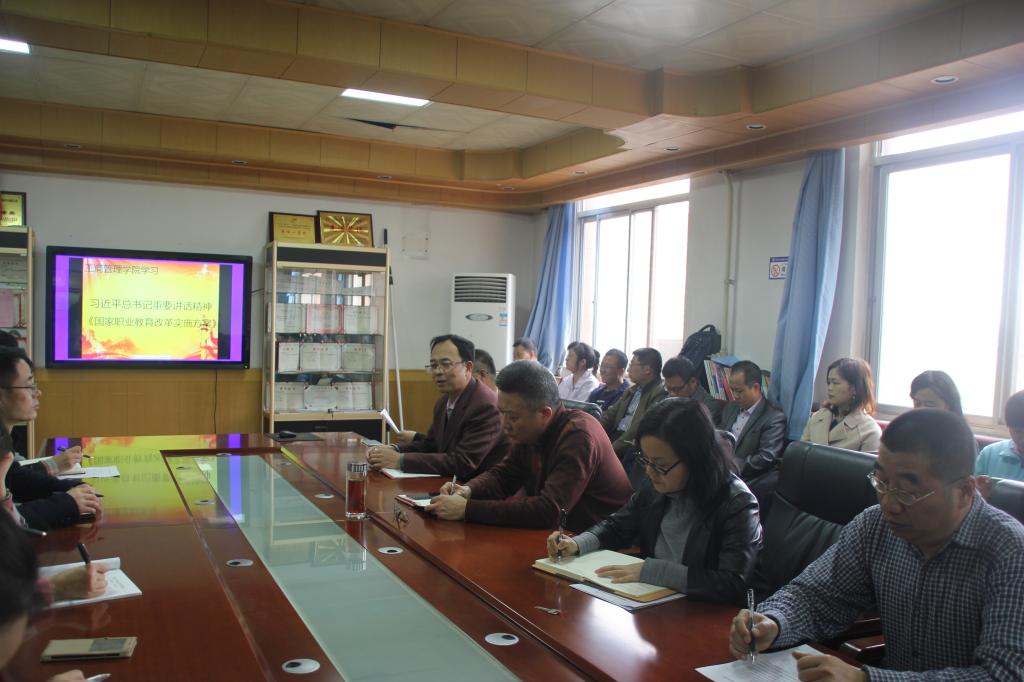 3月27日下午,工商管理学院在格物楼408会议室组织全体教职工学习“习近平总书记在学校思想政治理论课教师座谈会上重要讲话精神”和《国家职业教育改革实施方案》,会议由工商学院党总支书记孙继龙主持。