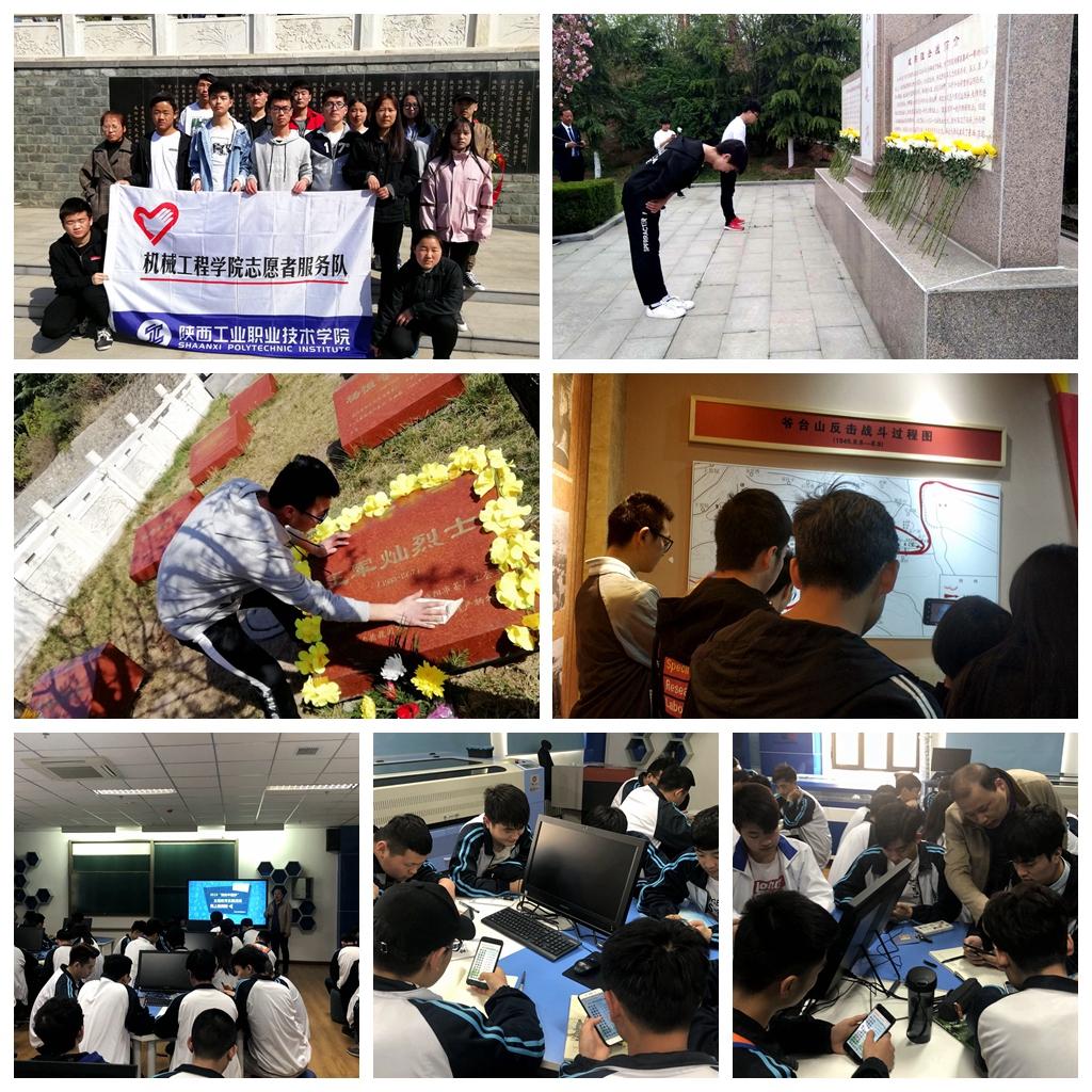 机械学院一是以缅怀革命英烈为主题开展了主题团日、红色电影赏析等教育活动,挖掘身边人、身边事,感染青年、激励青年。二是按照就近、便利的原则,组织团员青年前往咸阳革命烈士陵园开展缅怀革命英烈的纪念活动,引导广大团员青年继承英烈遗志、激发爱国热情。三是常态化对接咸阳市慈善扶贫协会“星期六行动”,深入咸阳革命烈士陵园开展文明祭扫主题志愿服务活动,通过主题宣传、文明倡议等方式,在市民中倡导绿色文明祭祀。四是运用“两微一端”等新媒体形式,同步在机械工程学院微信公众平台设立“祭英烈”专栏,在微博上开辟“机械学子清明祭英烈”置顶话题,在网站上链接了“清明祭英烈”网络祭扫,组织青年学生广泛开展网上祭英烈2019“我的中国梦”主题教育实践活动,表达对革命英烈的感恩之情和敬仰之意。同时,结合学院近期开展的学生安全教育和校园不文明现象集中整治活动,加强对学生清明节期间的安全知识宣传。