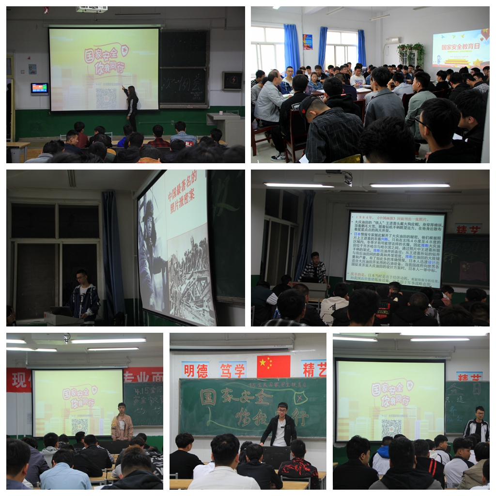 一是开展“国家安全教育进课堂”活动。通过开展“思政教育三分钟”活动,由专业课教师把国家安全教育引入课堂、融入专业,普及国家安全教育,感受大国制造魅力,营造“国家安全 关系你我”的教育氛围。