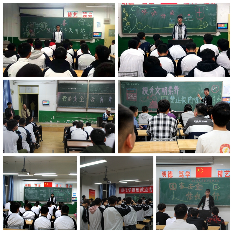 机械工程学院坚持围绕学生、关照学生、服务学生,先后组织了“新学期,努力从今天开始”、“3.5学雷锋纪念日”、“3.24世界防治结核病日”、“我的安全我负责”、“阳光护航”心理育人季、“提升文明素养,禁止校园吸烟”和“4.15全民国家安全教育日”等一系列微班会,倾力让精彩的班会课成为学生幸福生活的起点,让难忘的班会课成为学生美好时代的回忆。