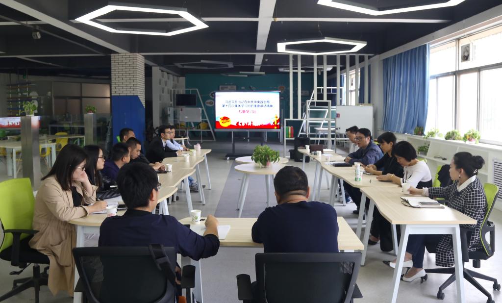 4月23日下午,团委召开习近平总书记在中共中央政治局第十四次集体学习时的重要讲话精神专题学习会,各二级学院团总支书记及团学组织学生代表在创新创业服务中心参加了会议,团委书记郝平主持会议。
