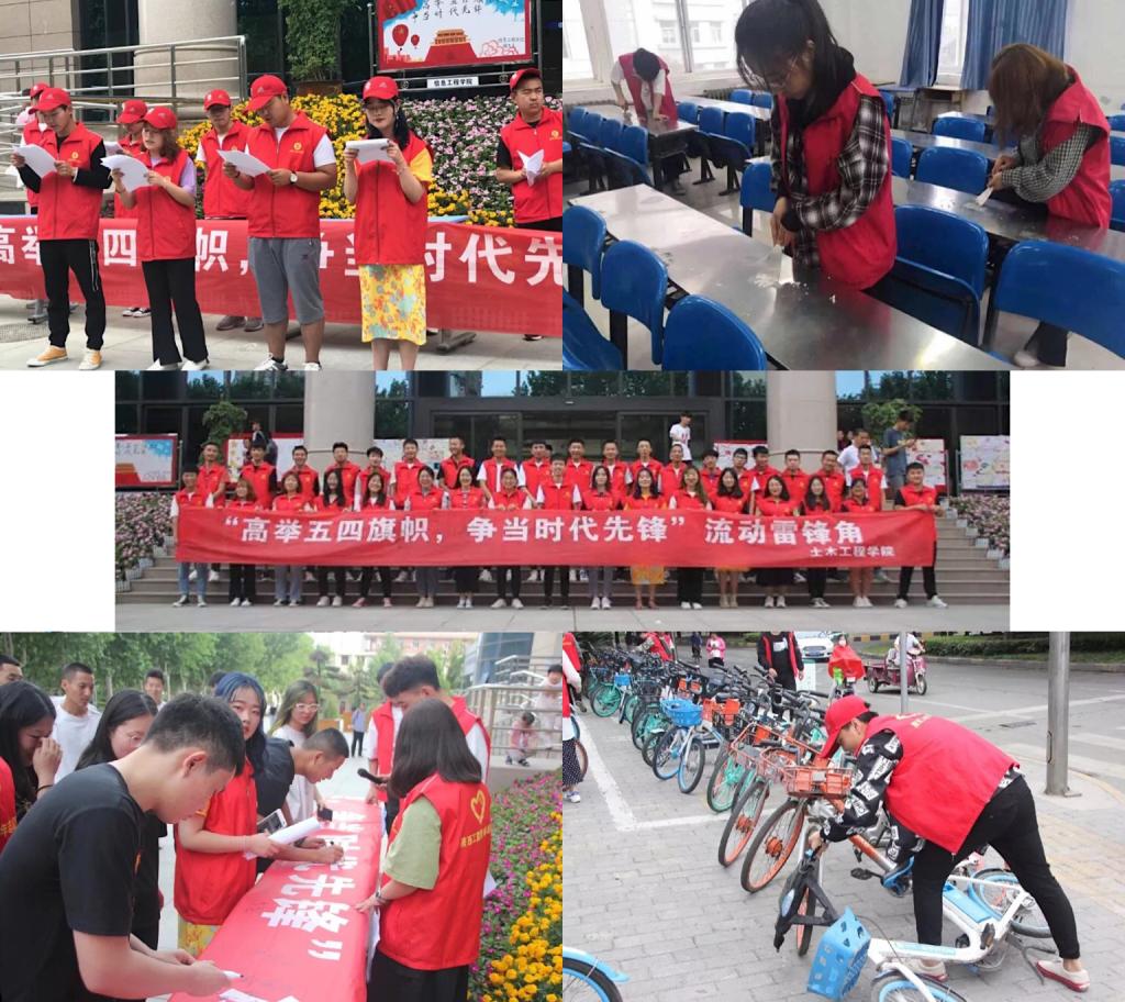为贯彻落实院团委《关于开展纪念五四运动100周年暨中国共产主义青年团成立97周年系列主题宣传教育活动的通知》精神,积极弘扬“爱国、民主、进步、科学”的五四精神,5月27日至5月31日,土木工程学院开展了“高举五四旗帜,争当时代先锋”流动雷锋角活动。