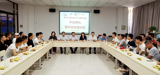 最后,电气工程学院领导为毕业生代表颁发了毕业证书。毕业典礼之后,电气工程学院学工办还组织部分毕业生召开了座谈会,了解学生生活工作情况。