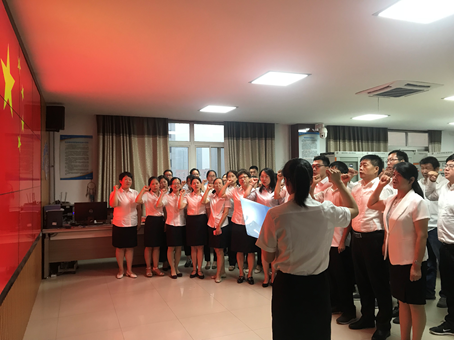 杜云书记带领全体教师共同学习了《新时代高校教师职业行为十项准则》、《高等学校教师职业道德规范》和《关于高校教师师德失范行为处理的指导意见》等相关文件,要求全体教师坚定政治方向、坚守廉洁自律、提升综合素质,不忘初心争做“四有”好老师。随后,在领誓人孟娇娇老师带领下,全体教师右手举拳,面向国旗庄严宣誓。