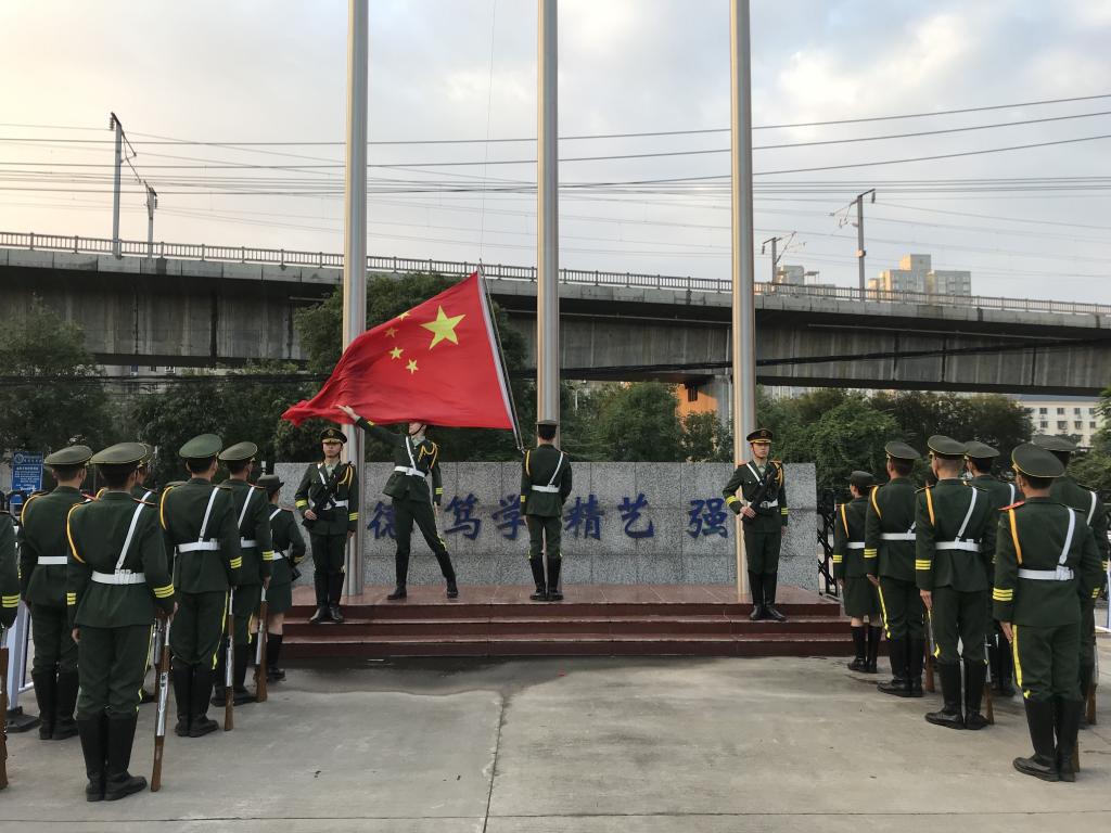 7点整,升旗仪式正式开始。在瑟瑟秋风中,国旗护卫队的队员们迈着坚定而有力的步伐,喊着嘹亮的口号,护送鲜艳的五星红旗走向升旗台。伴随着雄壮的国歌声,五星红旗迎着朝阳冉冉升起,雄壮的国歌响彻校园里的每个角落,庄严的仪式感染着每一个人。