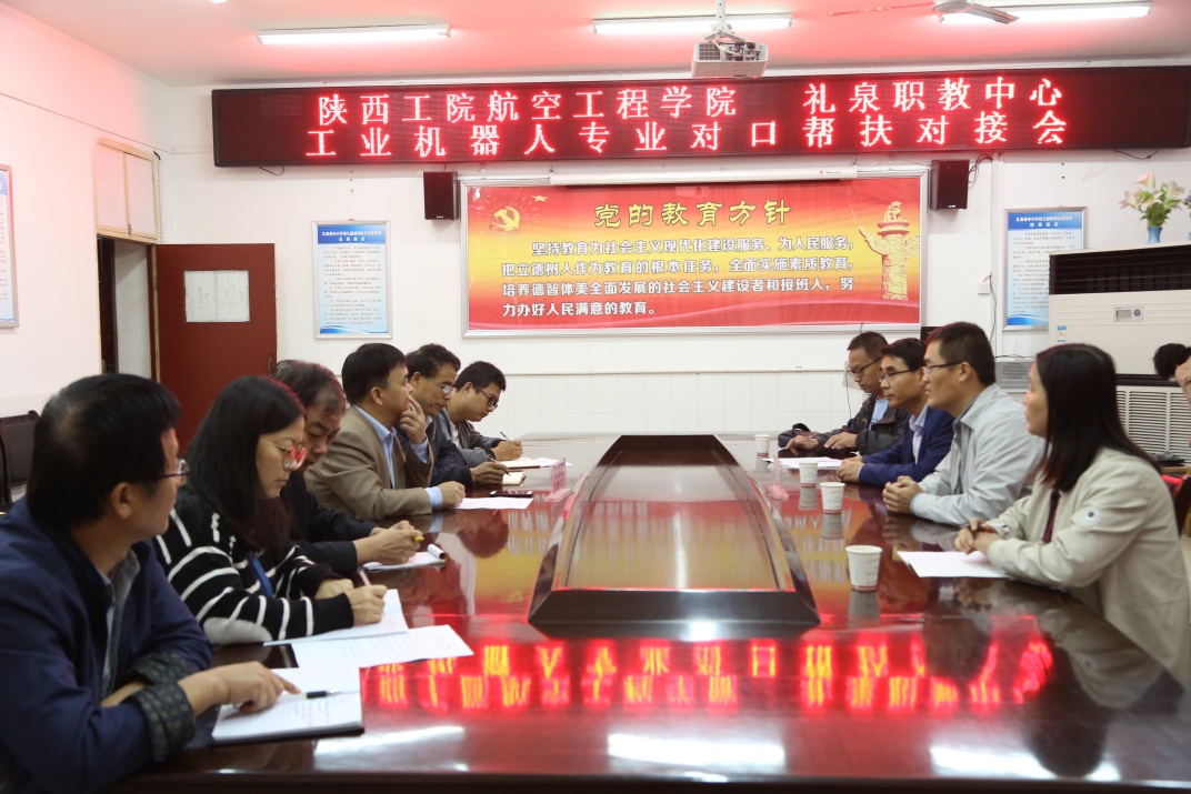 9月19日上午,航空工程学院院长李晓鹏、党总支书记刘军旭、副院长段文洁、教学办主任梁盈富一行赴乐游棋牌“双百工程”结对帮扶的礼泉县职教中心开展工业机器人专业建设、人才培养对口帮扶。