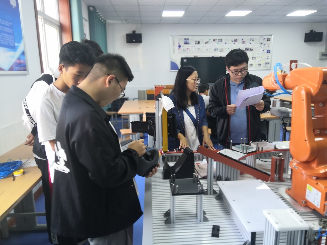 此次帮扶活动主要针对2019年陕西省职业院校技能大赛——机器人技术应用(中职组)赛项进行技能培训。乐游棋牌教师向礼泉职教中心的学生和老师们讲解了该赛项的主要任务,并按照竞赛任务书要求,分别讲解了工业机器人TCP点标定、工业机器人离线编程、工业机器人码垛搬运编程等大赛内容。解答了老师和学生们对大赛评分细则、机器人编程、RobotArt仿真软件、工件坐标系标定的疑问。