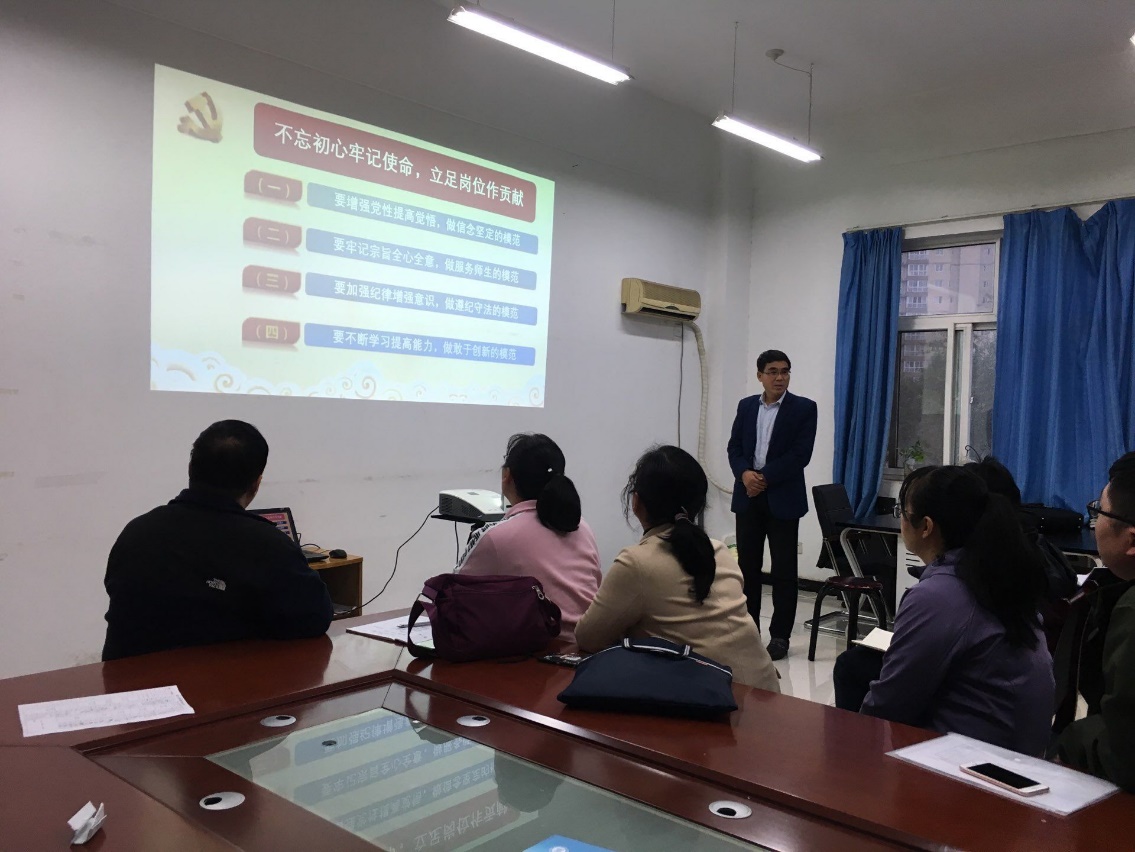 刘军旭书记从要增强党性提高觉悟,做信念坚定的模范;要牢记宗旨全心全意,做服务师生的模范;要加强纪律增强意识,做遵纪守法的模范;要不断学习提高能力,做敢于创新的模范四个方面激励广大教师党员要立足岗位做贡献,要坚持提升党性修养,补思想之“钙”、固党性之“元”、铸党性之“魂”。