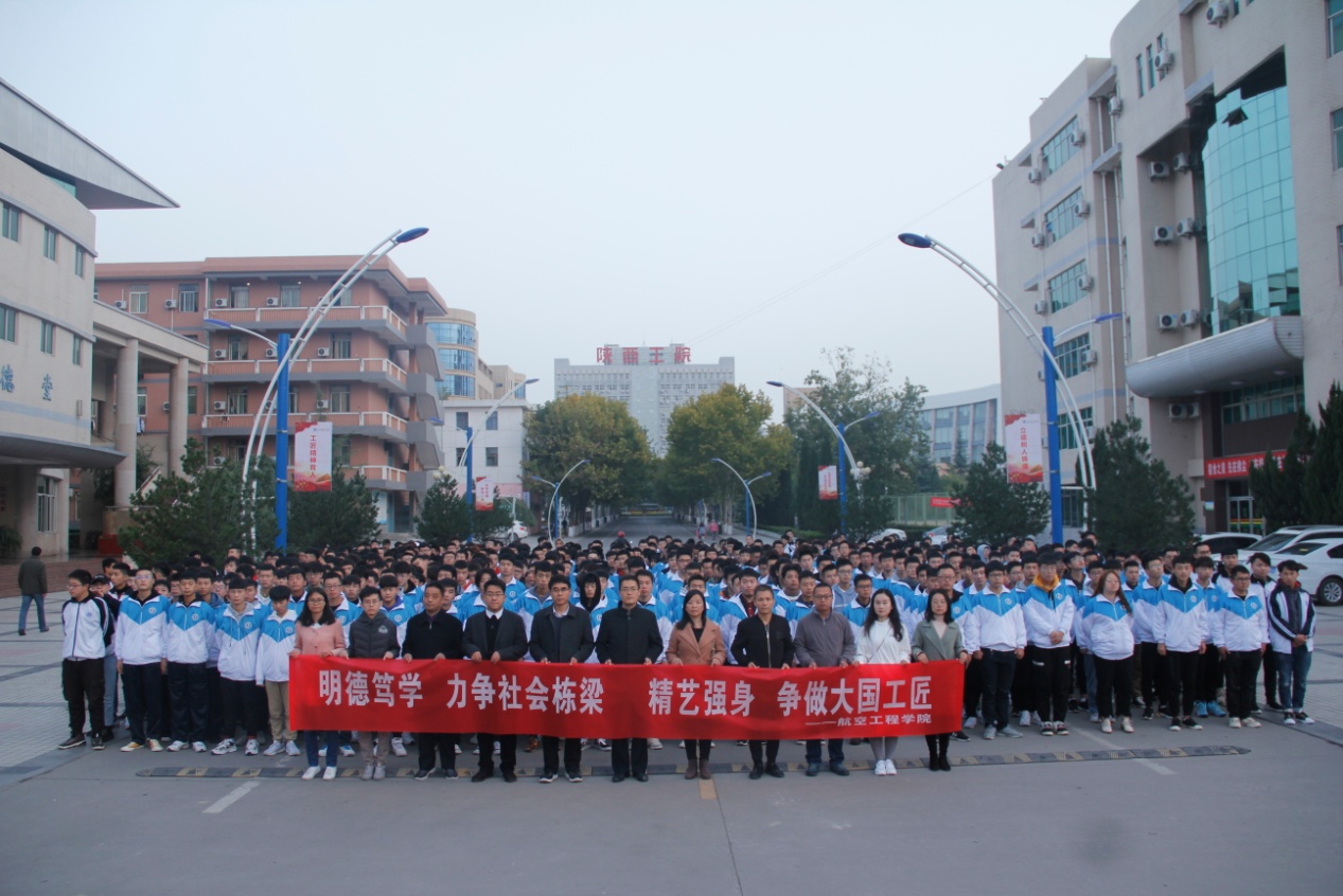 10月28日清晨,航空学院在南门广场开展了“国旗下的成长”主题教育活动,本次活动的主题是“明德笃学 力争社会栋梁,精艺强身 争做大国工匠”,团委书记、航空学院处、科级干部,学工办全体辅导员,学生会全体干部,学生党员,2019级全体学生共计700余人参加了活动。升旗仪式由机电1801班黎淼同学主持。