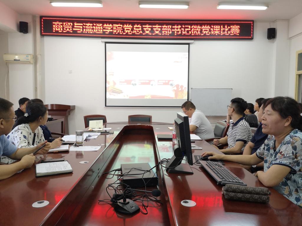 7月27日下午,商贸与流通学院党总支支部书记微党课比赛在商贸学院会议室举行。党总支书记陈昊平、副书记王艳和全体教师党员观看了比赛。