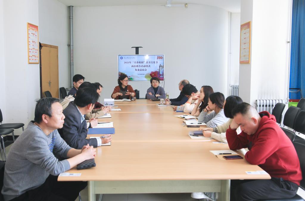 4月28日下午,图书馆在二楼会议室复盘总结2021年“书香校园”读书文化节两校联合启动暨主题报告会。会议由图书馆馆长高凤香主持。