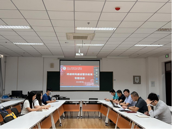 开展师德师风建设警示教育专题活动。9月13日下午,学院党总支在精艺楼4001开展了师德师风建设警示教育专题活动,全体教职工线上线下参加本次活动。党总支书记张科海领学了相关文件,部署师德师风方面问题大排查,引导全体教职工受警醒、明底线、知敬畏,要求全体教师认清形势,端正心态,加强自我师德师风教育,争做有理想信念、有道德情操、有扎实学识、有仁爱之心的“四有好老师”。通过本次活动,教师们纷纷表示充分认识到了师德师风建设的重要性,决心做到不忘初心、牢记职责、警钟长鸣、坚守底线,并以赤诚之心、奉献之心、仁爱之心投身于伟大的教育事业。