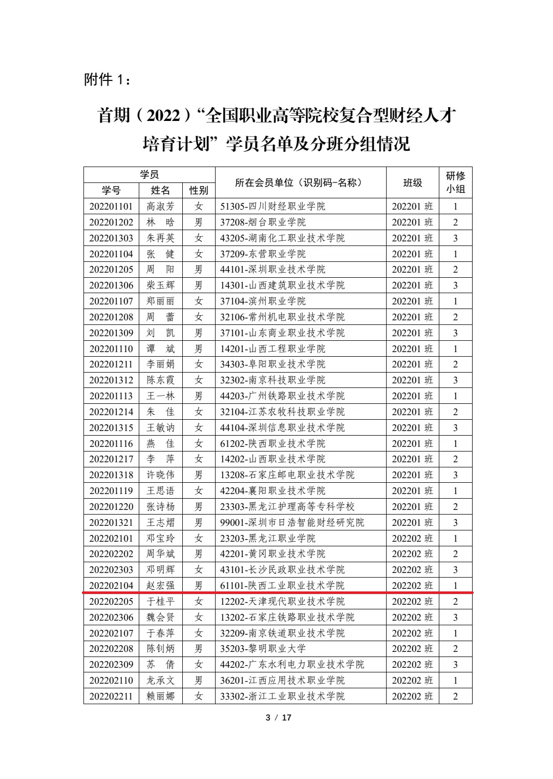 据悉,首期(2022)“全国职业高等院校复合型财经人才培育计划”学员是按照既定的遴选程序,经学校推荐,职教财务专委会和高职会计分会联合初审、复审、测试、综合评价、集中研修品行察看,从各会员单位先后推荐的334名学员候选人中确定的,共计126名。