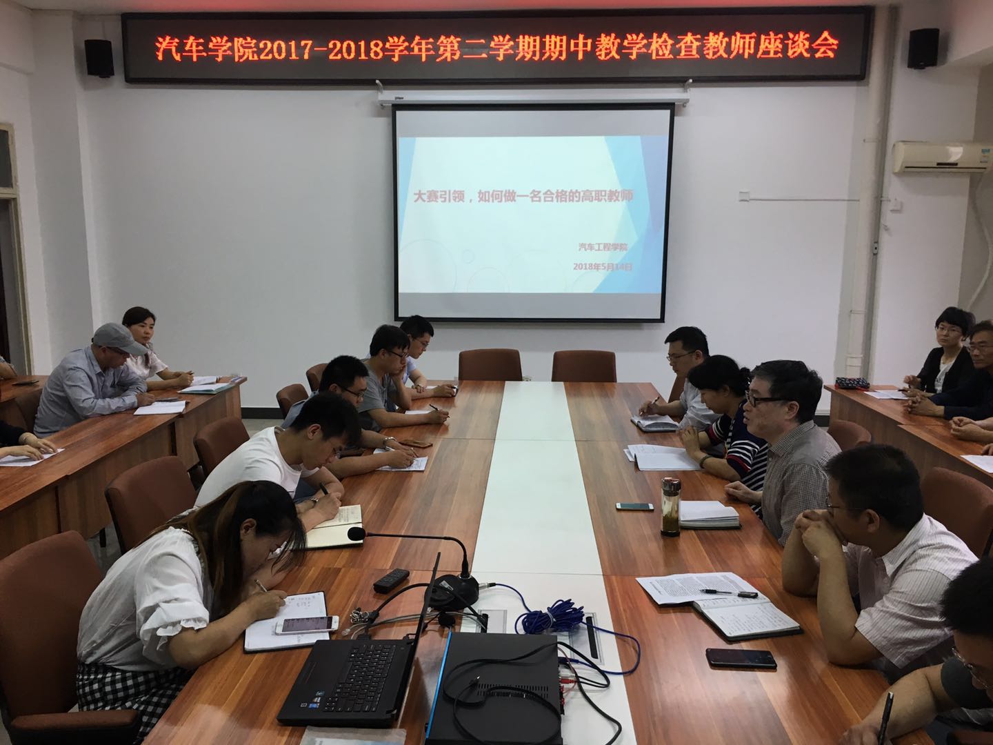 为加强教师座谈会的沟通和引导作用,提高教师工作的目标性和主动性,汽车工程学院于5月14日下午召开了以“大赛引领,如何做一名合格的高职教师”为主题的期中教学检查教师座谈会,会议由汽车工程学院院长李选芒主持,并遴选了的朱辉、杨阳、李江等六名老师进行主题发言。