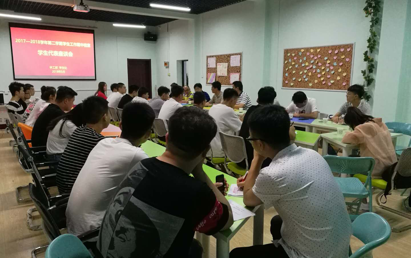 5月17日下午,2017-2018学年第二学期学生工作期中检查学生代表座谈会在心理咨询中心团体辅导室召开,学工部(学生处)部(处)长王超联、学生处副处长张翔、学生处各科室负责同志和学生干部、学生代表30余人参加了会议。