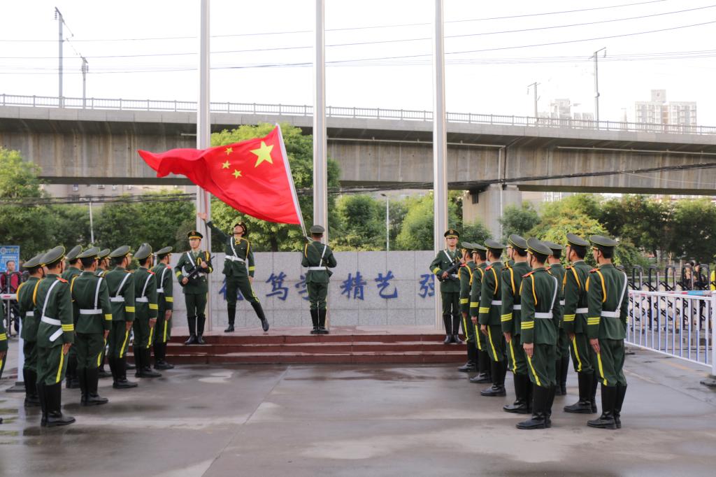 6:50分,升国旗仪式正式开始。在《歌唱祖国》的伴奏下,国旗护卫队的队员们护送国旗到升旗台;在嘹亮的国歌声中,五星红旗冉冉升起,全体师生行注目礼,表达了自己对国家、国旗的热爱和敬仰。