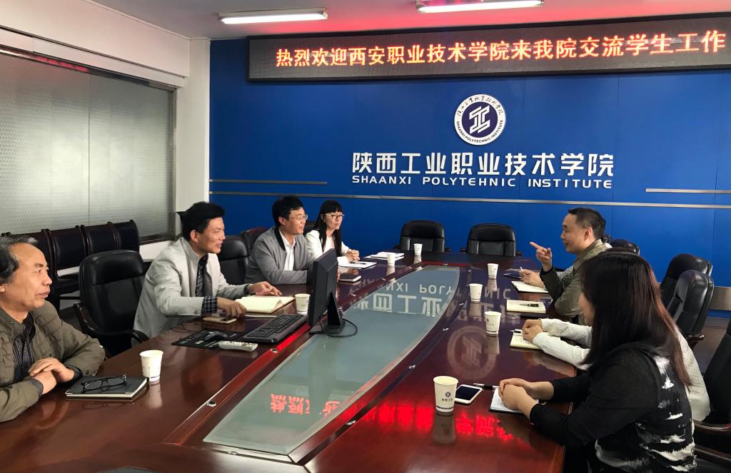 5月9日上午,西安职业技术学院学生处处长李军林,副处长郑小琴一行四人来乐游棋牌交流工作,乐游棋牌学生处处长王超联、副处长张翔热情接待来宾。