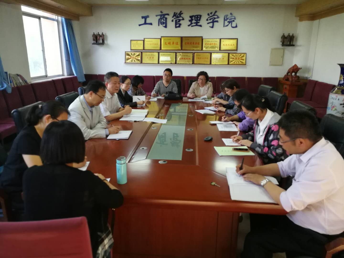 为全面了解教学运行实际情况,促进教学改革、完善教学管理,5月7日下午,工商管理学院在格物楼408召开期中教学检查教师座谈会。工商管理学院党政领导、各科室负责人、教研室主任、专业带头人及在线开放课程主持人参加了座谈会,座谈会由工商管理学院院长韩文飞主持。