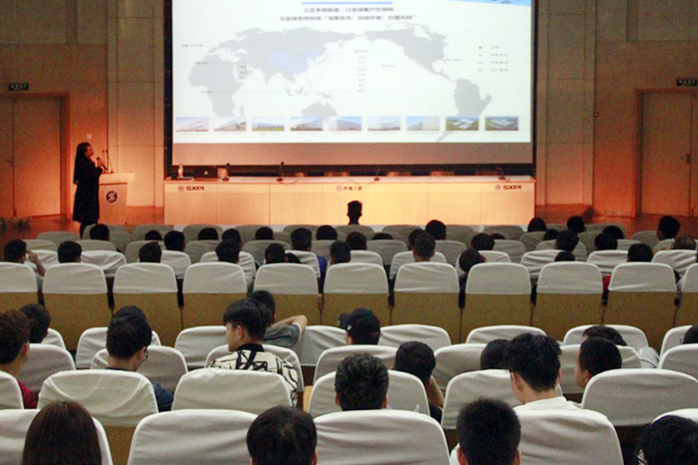 京东方集团技能人才确保部邢燕妮、杨超群介绍了公司的主要业务、工厂分布、福利待遇及订单班的有关情况,并对同学们提出的问题进行了现场答疑和网上调研。