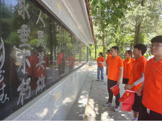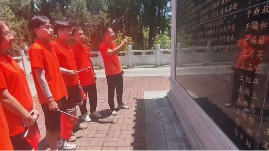 在纪念墙前,实践团队员代表带领其他实践队员一起重温历史,追寻先辈遗迹。实践团队员深刻感悟到“饮水思源”这一词的真正含义——不忘本。正因为有无数烈士的无私付出和英勇牺牲,才造就了源远流长的富强美丽中国。烈士虽已远去,但留存的精神依旧永垂不朽、浩气长存,其光辉也一直照亮着人民群众的前进道路。
