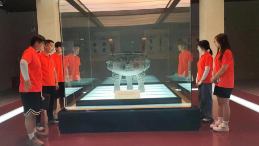 图上为实践团全体成员围观文博馆镇馆之宝——西周兽面纹五耳鼎