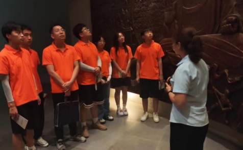 图上为实践团队员在文博馆出口浮雕处进行总结和感悟