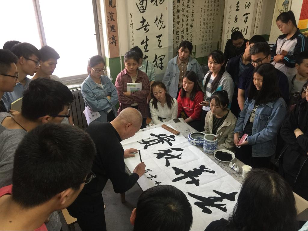 最后,他现场创作书写并讲解“春华秋实”“博学文雅”,让大家完整地领略了书法的创作过程,使师生们受到了书法艺术熏陶,并为现场的书法爱好者每人赠送书法小品一幅。