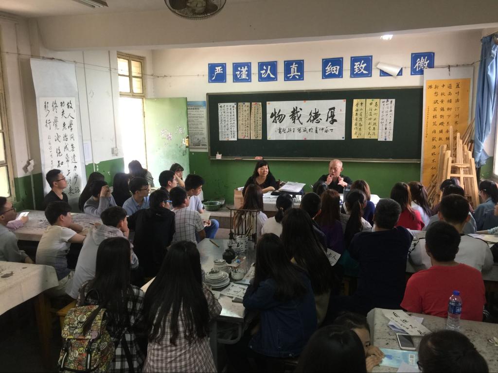 王老师首先介绍了书法的发展历史、元素及运笔方法,王老师指出,书法学习的最佳方法是临贴,通过学习前人优秀的作品,感知其中所蕴含的书法知识,从而有效提高自身的境界。此外,王颖哲老师还介绍了如何使书法作品内容与形式完美结合、作品的效果、字体的选择、印章的使用等,王老师以自己对书法的亲身经历就如何学习书法、临摹、创作及书法的题款知识做了精彩的讲解。