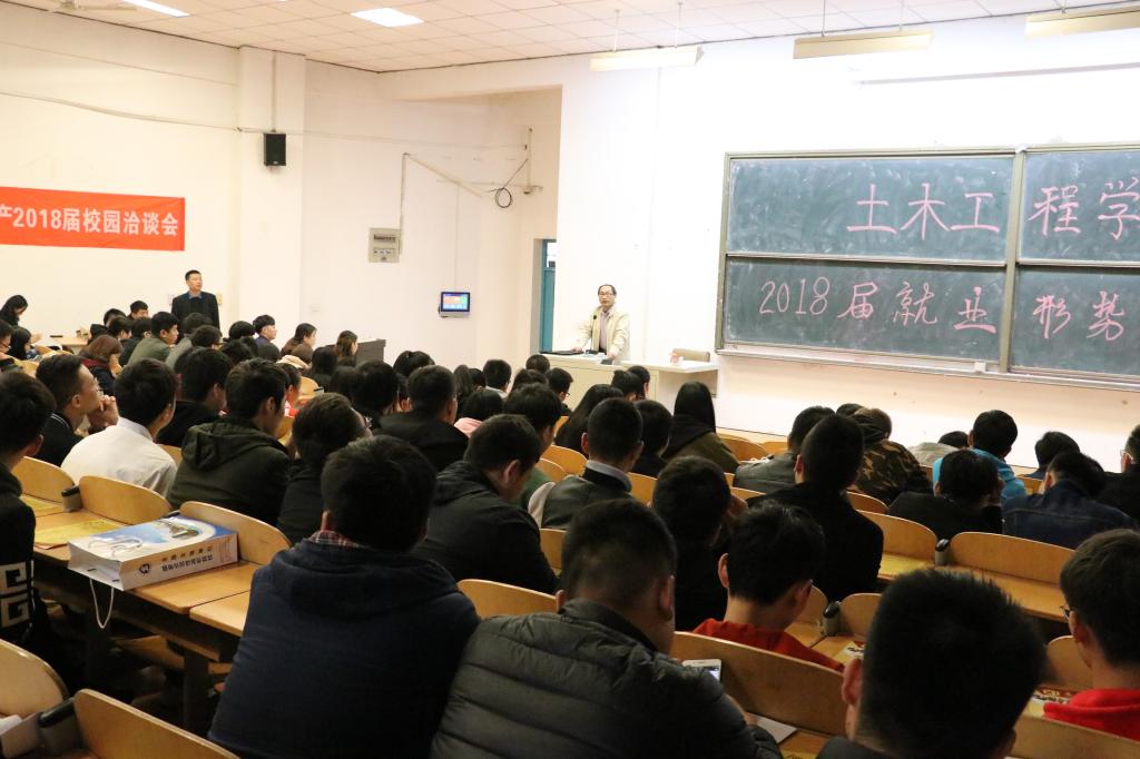 10月30日下午,土木工程学院在崇文西楼302室召开了2018届毕业生就业形势报告会。土木工程学院书记何克祥,学工办主任韩二豹、大三辅导员以及大三200多名未就业学生参与了报告会。此次报告会对当前的就业形势与现状进行了分析,对各个专业的就业方向做出了指导,并解答了同学们关于就业的顾虑和疑惑进行了解答。