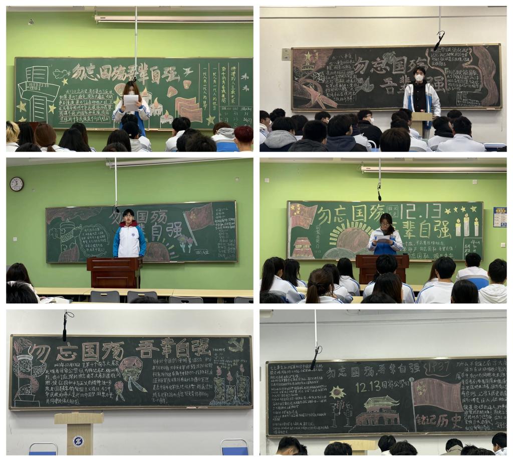 2023年12月13日是第十个南京大屠杀死难者国家公祭日。为铭记历史、缅怀先烈,深切悼念南京大屠杀遇难同胞,弘扬和平与正义的精神,进一步激发团员青年的爱国主义情怀,为实现中华民族伟大复兴的中国梦凝聚力量,12月13日晚自习,校团委制定主题团日活动方案,在各二级学院团总支精心组织策划下,全校各班团支部开展了“勿忘国殇 吾辈自强”主题团日活动。
