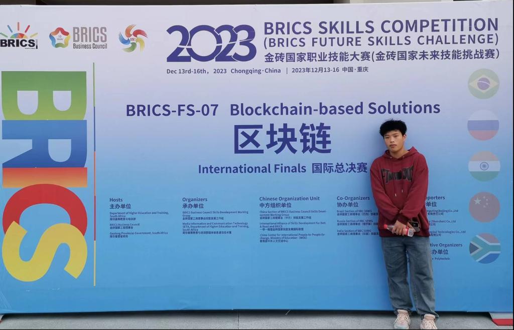 2023金砖国家职业技能大赛“区块链”赛项国际总决赛于12月14日至16日在重庆航天职业技术学院进行,信息学院耿倩老师指导的软件2206班高菘菘荣获国际总决赛三等奖。