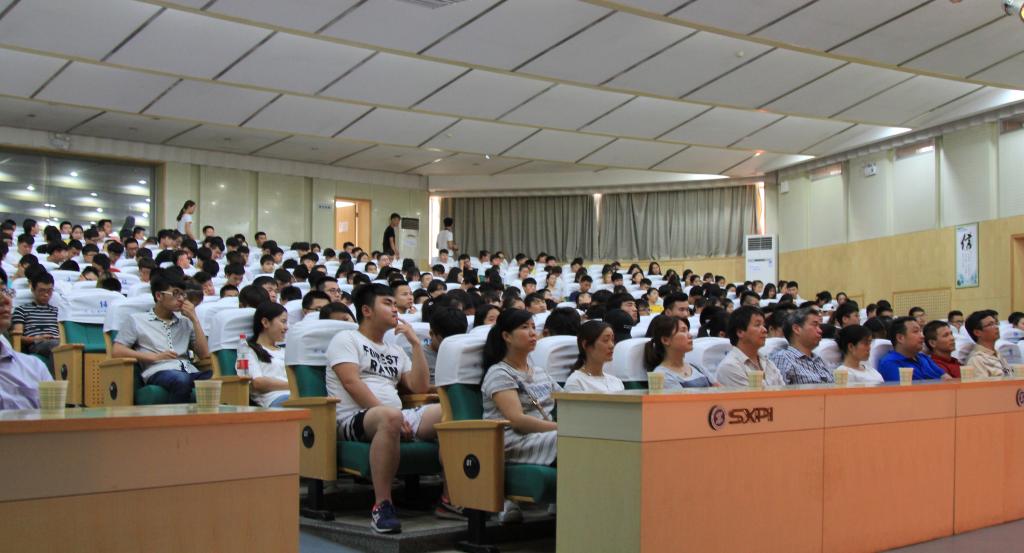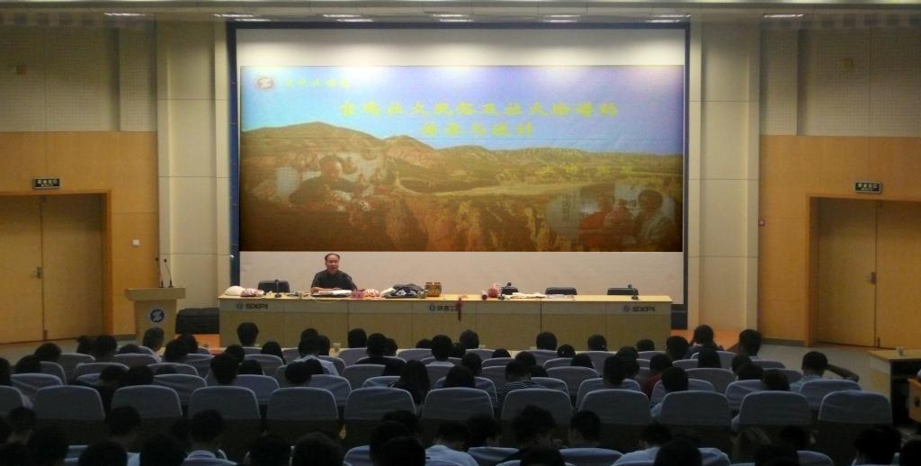张星老师首先从传统民间艺术引入,把自己带来的木板年画、凤翔泥塑、织布的梭子、洗衣用的棒槌、老虎枕、斗、马勺脸谱、皮影等民间艺术品一一展示给大家,具有民族传统的造型和色彩,让台下观众产生共鸣,引起了大家对传统民间艺术的兴趣,他又从6月10日自然和文化遗产日谈起,通过民间社火的起源、产生、类型讲到社火脸谱、以及自己学习、从事社火脸谱的经历,特别是他为了搜集社火脸谱、跟着社火队、服务于社火队,整理出一张张的脸谱形象,让这原生态的社火文化得以传承下去,让我们从中感受到了他精湛技艺背后蕴含着的对技艺精益求精、兢兢业业、一丝不苟的“工匠精神”,他深入浅出、生动形象的讲述感染了现场每一个人。接下来从社火脸谱讲到马勺脸谱的设计制作过程、从马勺脸谱的打磨、构图、白描、涂色讲到他独创的沥粉勾金,并进行了现场演示,精彩的讲解赢得了现场阵阵掌声,不仅让大家近距离的了解了马勺脸谱的创作过程同时受到了很好的民间艺术的熏陶,为我们上了生动一课。讲座互动环节,现场老师、同学积极提问,张星老师一一给予解答,专业而又富有激情的讲述折服了现场所有观众。最后,张星老师为现场的老师和积极提问的学生每人赠送了他自己制作的马勺脸谱挂件。